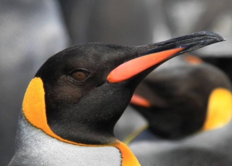 Have a look at the king penguin’s amazing eye – it’s completely black! According to SeaWorld.org, “The pupil of a penguin’s eye is circular. When constricted, however, the pupils of the king penguin are square.”