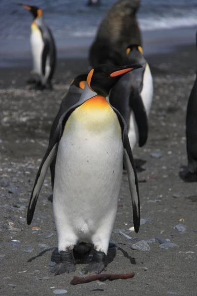 King penguins are very sociable creatures. According to Werner Sinclair, when this photo was taken the penguin pair had been having a rather long, vocal conversation with another bird that seemed to be minding its own business … And then the pair promptly walked away! Wonder what the discussion was about?