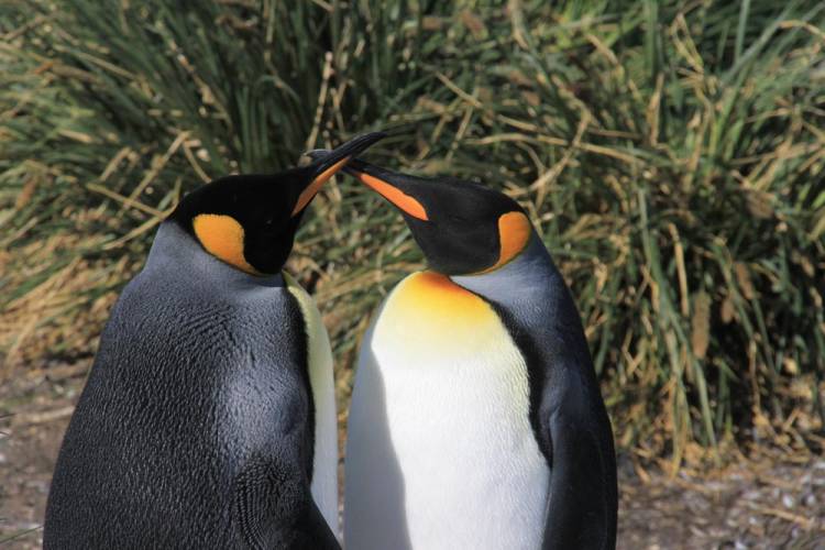 King penguins are monogamous and “usually breed with the same partner during the following season,” says Birds in Backyards. Couples incubate their young as a team until offspring are old enough to join a crèche (about 38 days after hatching).