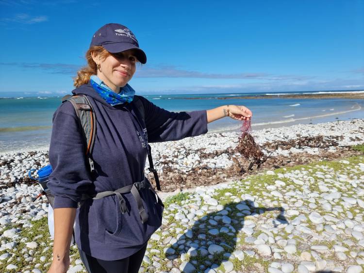 Before the team began walking, Alex and Kirshia had the opportunity to do a short presentation to the walkers. During this time, they were taught what to do if they found a stranded turtle (more on that below) and about the need to be on the lookout for plastic pollution along the coastline. "It was really cool to see how excited the ladies got about the idea of helping turtles," said Alex.