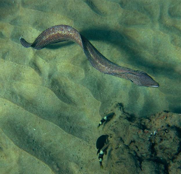The title of Smallest Moray Eel goes to the Snyder’s moray, reaching a maximum length of only 11.5cm. They are not well researched (probably because they are hard to find, since they are tiny).