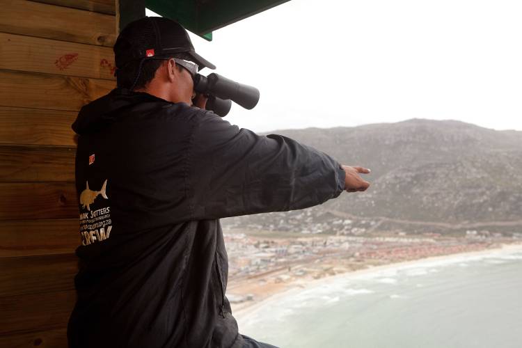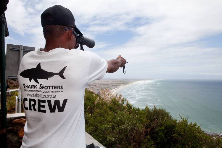 Its trained observers, called spotters, are strategically located at elevated positions above high-risk shark beaches provide an early warning system for water users of the presence of great white sharks.