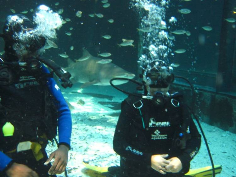 Msa and Razaan are not qualified divers and had to complete a resort course with the Aquarium’s dive instructor Iain Robertson. At the one-day course the pair was taught the basics of diving such as how to handle the equipment and breathe. They started their training at 08h30, and after three-and-a-half hours were “amped” to go diving.