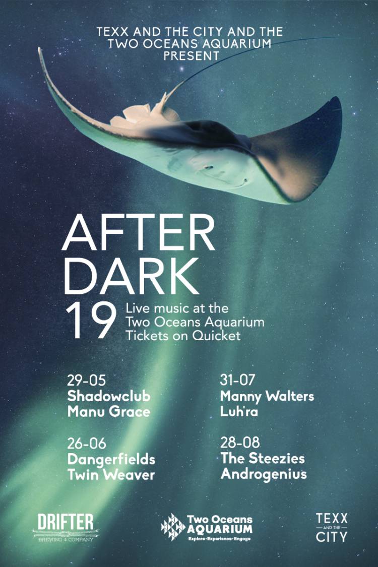 After Dark at the Two Oceans Aquarium is back! Following the sold-out success of the 2018 shows, Texx and the City and the Aquarium are once again joining forces to showcase some of South Africa's finest musical acts. Over four nights from May to August 2019, the Aquarium will host eight stellar bands: Shadowclub, Manu Grace, Dangerfields, Twin Weaver, Manny Walters, Luh’ra, The Steezies and Androgenius will be honouring the Mother City’s love for live music right here at one of Cape Town’s best-loved attractions.