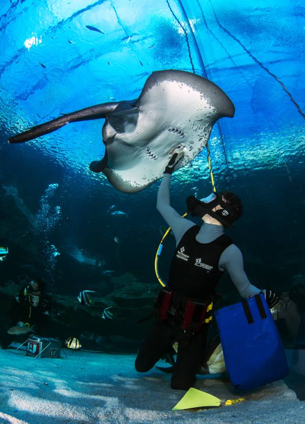 Already-qualified divers can dive in the I&J Ocean Exhibit with the rays and turtles, the Save Our Seas Foundation Shark Exhibit with the ragged-tooth sharks, or the Kelp Forest Exhibit amongst the swaying fronds of the giant kelp plants and large fishes.