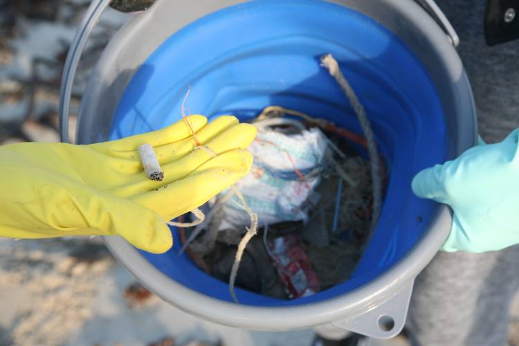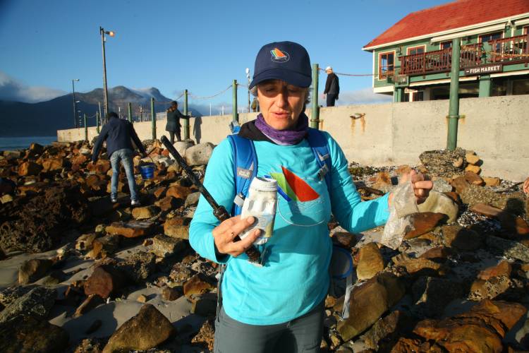 Hout Bay is a great example of the different sources of litter that enter the ocean - discarded or lost fishing gear, cigarette stompies and bottles discarded by beach visitors, and food wrappers and shopping bags blown into the ocean from inshore.