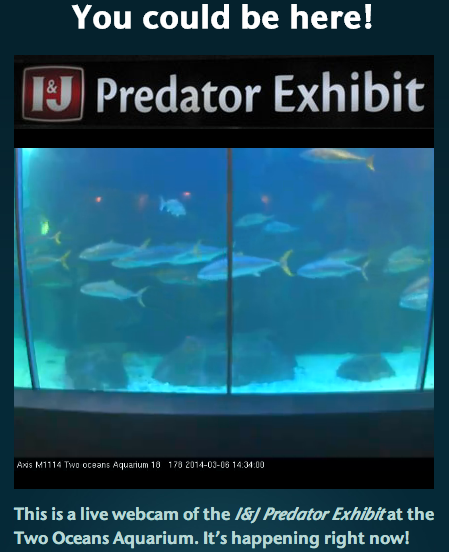 Take a peek into the lives of some of the Two Oceans Aquarium’s residents – visitors to the Aquarium’s website can watch a live video stream of the I&J Predator Exhibit on our home page.