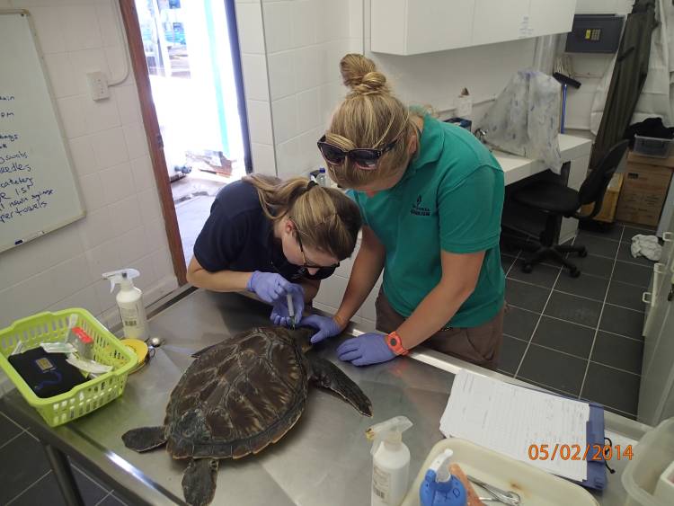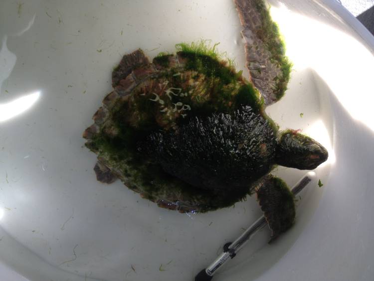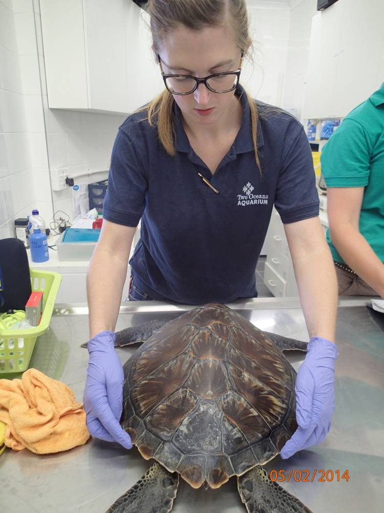 According to Dr Georgina Cole, the Aquarium’s resident vet, “We were concerned that Yoda had an intestinal blockage of some sort so we took her for regular X-rays to see what was happening in the intestines. Once we had tube fed her a few times things started to move. It also seemed that she had a heavy parasite load because once we had dewormed her she started to pick up weight nicely.” Upon her release, Yoda weighed 7.16kg and measured 40cm (carapace length) and 38.8cm (carapace width).