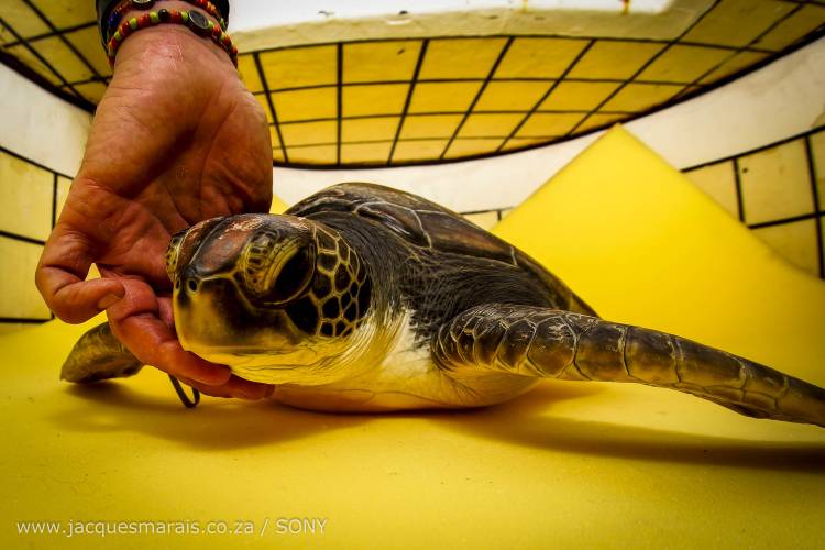 Yoda (gender unconfirmed) was brought to the Aquarium in June 2013 after ‘she’ washed up on Melkbos beach. Upon arrival at the Aquarium, she was weak and dehydrated. She weighed just 4.9kg and measured 36.5cm in carapace length and 36cm in width.