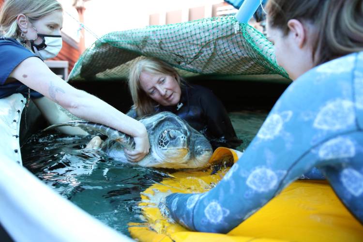The release date for Geri has not been set, but her status will be reviewed continuously and we are not expecting her to be in the I&J Ocean Exhibit for long. Be sure to visit this special turtle on your next stop at the Aquarium, and wish Geri some quick healing!