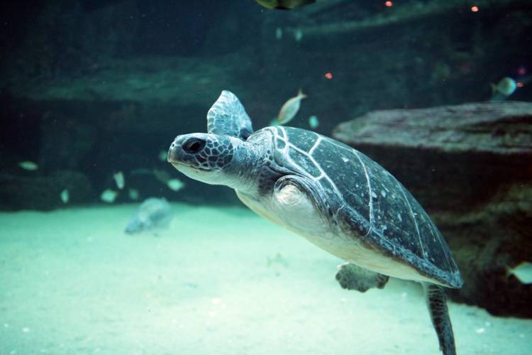 The I&J Ocean Exhibit has a newcomer - Geri, a three-flippered green sea turtle!