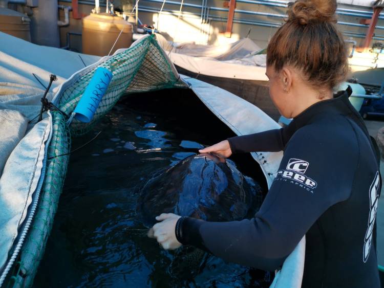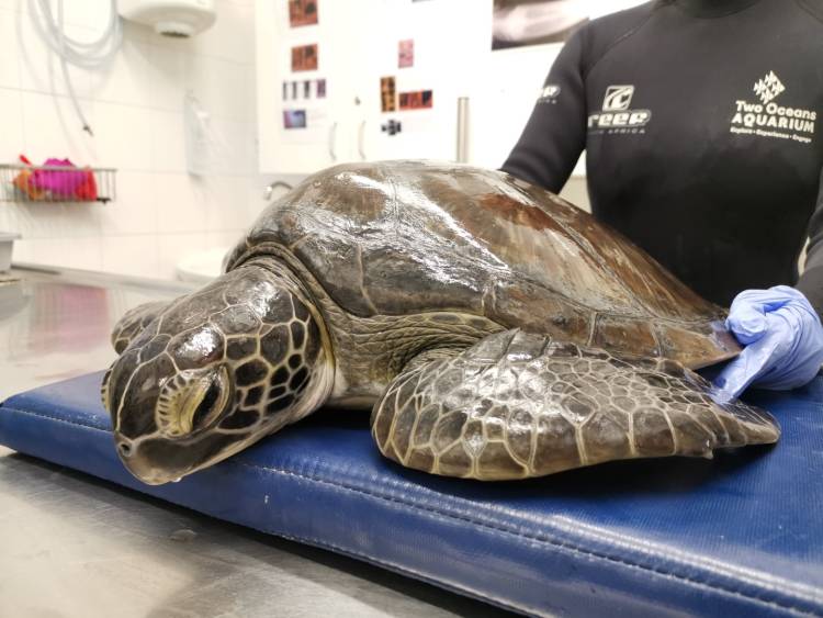 For this reason, the turtle rehabilitation team has decided to keep Harry a bit longer, to give him a chance to rebuild his strength before release. During his time in the I&J Ocean Exhibit, his health will continue to be monitored to ensure that there are no lingering digestive problems, and Alexandra Panagiotou, on the Two Oceans Aquarium Education Foundation's turtle team, will monitor his fitness and behaviour. If all goes to plan, a release date will be planned for Harry once the warm currents return to the Cape.