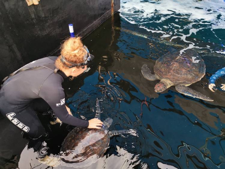 The seven-month-long healing process took its toll on Harry, leaving him underweight and unfit. Just as we humans need some time to bounce back after recovering from a severe illness, turtles also need to regain their strength and fat reserves after a long recovery. This is especially important, as sea turtles need to be able to cover large distances between feeding grounds once back in nature.