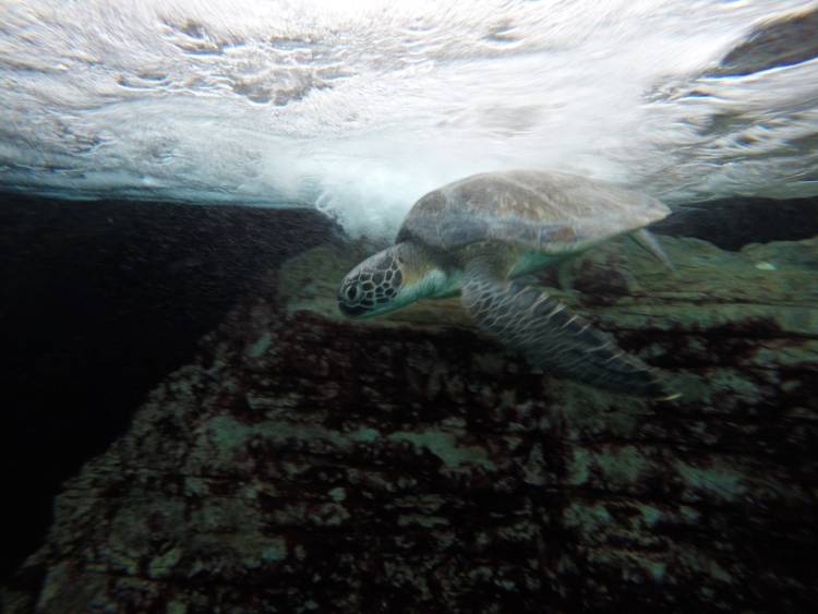 We've just welcomed a newcomer to the I&J Ocean Exhibit - Harry the green turtle! While his public debut might be new and exciting, Harry actually arrived at the Two Oceans Aquarium in October last year, and has been undergoing intense rehabilitation with the animal health team of the Two Oceans Aquarium Education Foundation. Harry is now out of the woods, but he still needs plenty of time to rest and regain his strength before being released, and the I&J Ocean Exhibit is providing a big, safe space for him to do this!