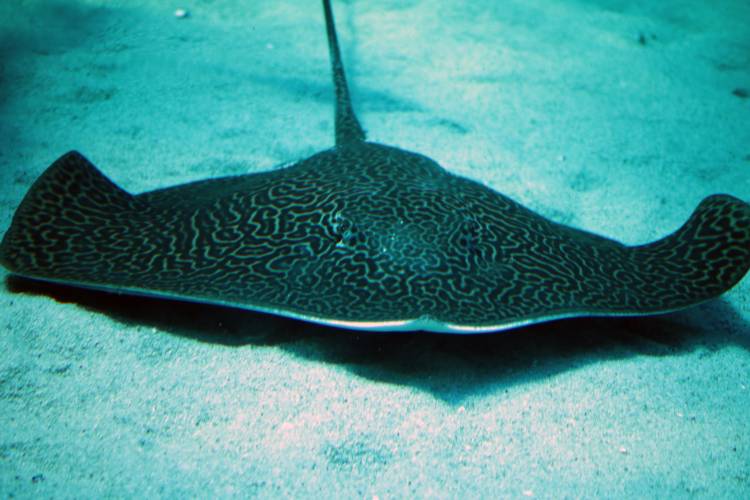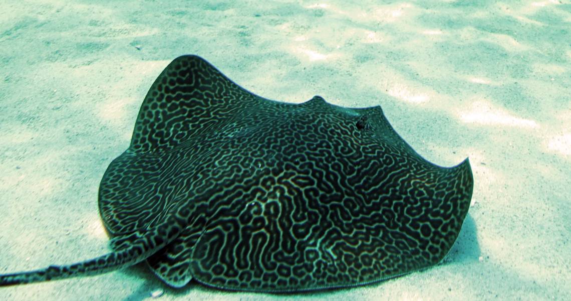 Internationally, the honeycomb stingray is known by a bunch of different names: In the USA it's called a reticulate whipray, in Australia it is known as a leopard stingray, and in Europe it is called a marbled stingray.