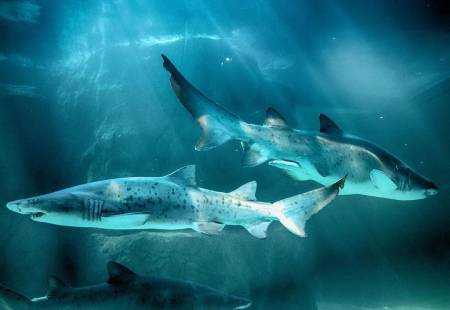 Unlike the short-tail stingray, the honeycomb has a thin, long tail - alluding to the common name of its family, "whiptail". Electrical sensors in this long tail allow it to sense approaching predators, such as dolphins and sharks, and you may see it extending its tail like an antenna inside the exhibit. The honeycomb is so good at detecting predators that many other species of stingray prefer to remain near it, rather than with their own species.
