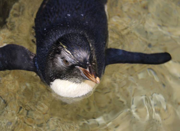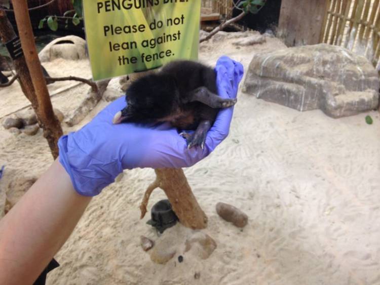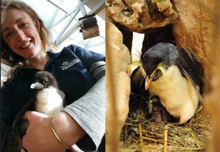 On 7 October 2014, as we held our breath while the acrylic windows were installed in our new exhibit, a new breath of life joined our northern rockhopper penguin colony. A little rockhopper penguin chick chose this auspicious day to hatch! So, not only were we all in a flurry about the windows, the rockhopper beach was being kept under close surveillance by dedicated staff and volunteers, taking turns to run between the beach and the window installation! The penguin chick was named Clax in honour of the company that manufactured and installed the windows.