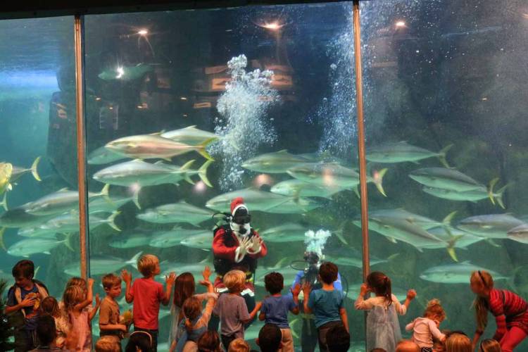 Our very special Scuba Claus and his elf made their appearance diving with the sharks, and boy were the kids excited! They were convinced that he flew all the way from the North Pole, landed on the Aquarium roof and then jumped into the display to visit them.
