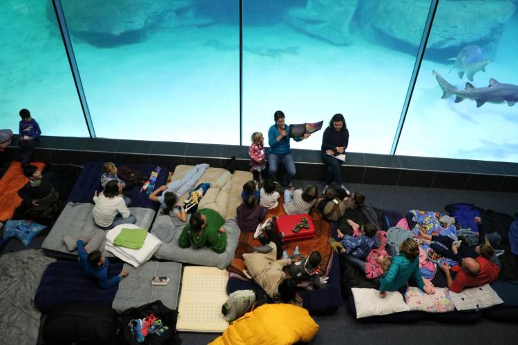 After hot chocolate and a movie, we will welcome slumber in front of the I&J Ocean Exhibit, where shoals of fish, rays and our rescue turtles will watch over us while we sleep. Or, if you prefer, you can fall asleep under the watchful eye of the ragged-tooth sharks at the Predator Exhibit.
