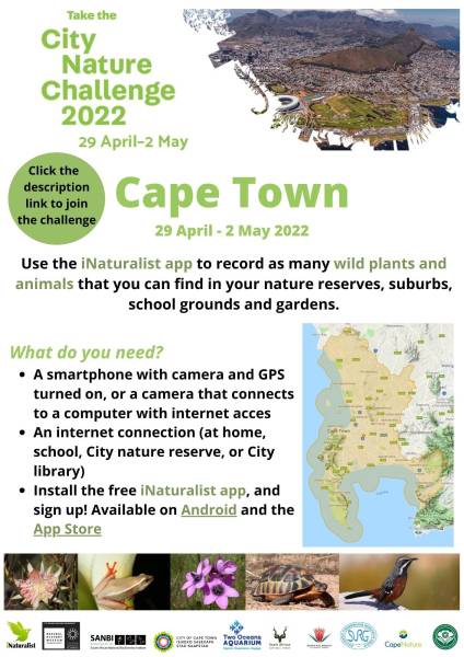 The City Nature Challenge is coming up, and we want our members and fans out and about, to support beautiful Cape Town's biodiversity from 29 April to 2 May.