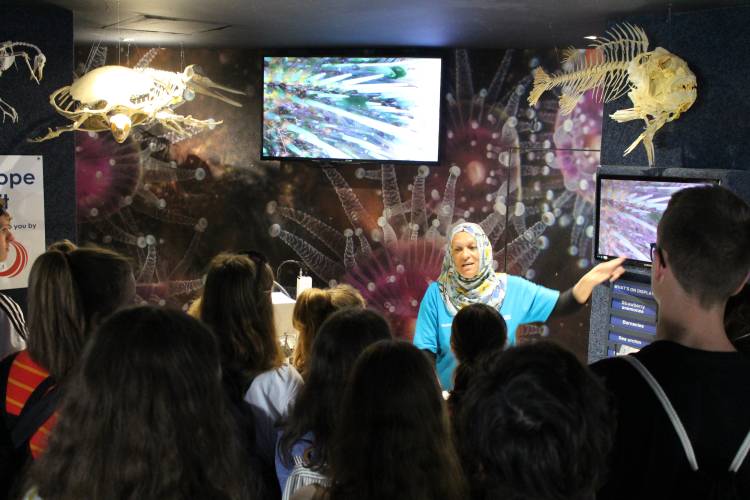 At the Microscope Exhibit, a trained staff member, Young Biologist or Aquarium volunteer will introduce you to the world of the minute and microscopic - the tiny tube feet a sea urchin uses to walk, the odd behaviours of near-microscopic shrimp, and an amazing host of strange life collected daily from the shores of Cape Town. Our digital microscope projects magnifications of the subject under examination onto an array of screens, so you are able to see these features in high definition. You can also peek into the water to see if you can make out the tiny animals with just your own two eyes.