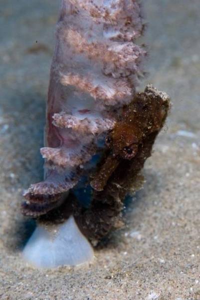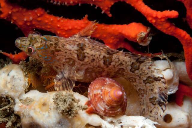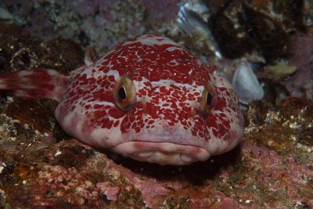 The ferociously grumpy-looking rocksucker also guards its eggs.