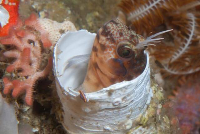 There are also quite a few fish that give birth to live young. The klipfish family has internal fertilization and the females can be seen to get markedly bigger as the embryos inside them develop and grow. Eventually, they give birth to miniature versions of themselves. These tiny fishes may have protective camouflage coloration but are more able to fend for themselves than the externally fertilised fish larvae, having more developed bodies and senses.