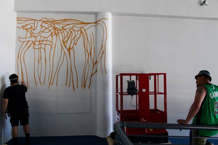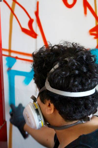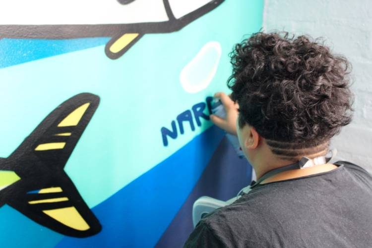 It took Nardstar about a month to complete this masterpiece because she could only start work after hours, once all our visitors had left. Her medium - spray paint - is not so pleasant for our visitors to inhale. She works with a mask on!
