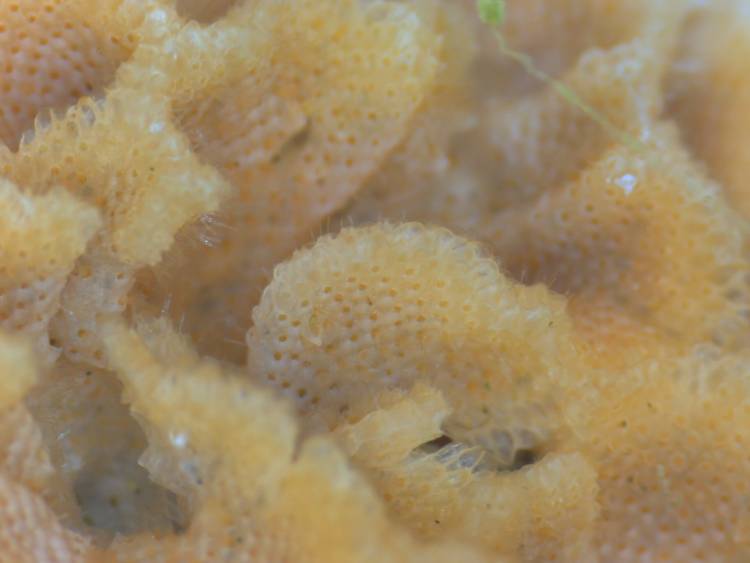 A colony of tiny animals called bryozoans. Colonies of these "moss animals" form huge structures - known as scrolled false corals in the case of this species.