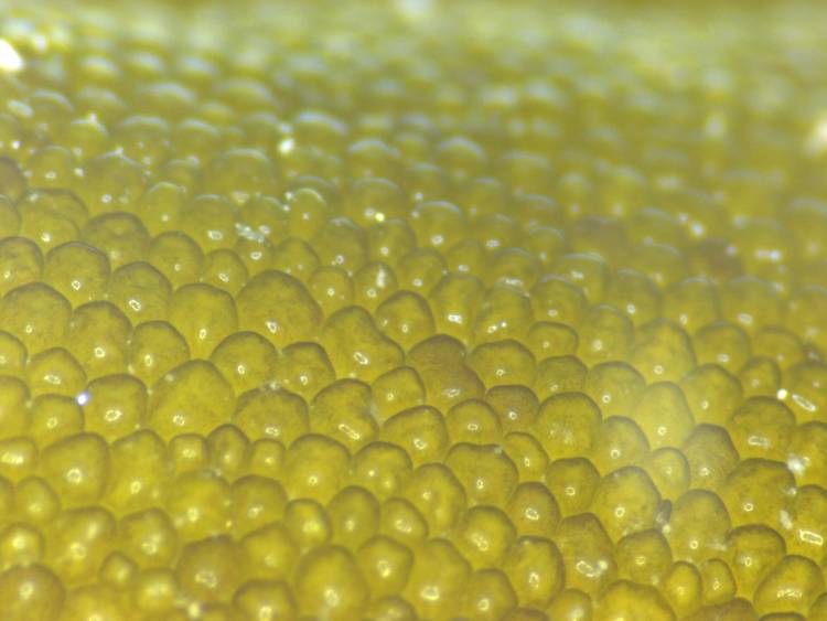 The cells of an upright codium, a type of seaweed that is quite unique - its interior cell membranes break down so that chloroplasts (the parts of the cell that turn sunlight into food) can move to the parts of the plant that is getting the most light.