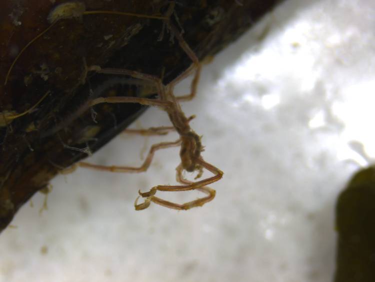 This is a scarlet sea spider (Nymphon signatum). Sea spiders are not spiders!