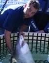 The ray, named by Paris by our Curatorial staff, was collected by aquarist, Derick Neethling, while fishing from a boat on the outer reefs near Struisbaai. Paris caused great excitement amongst the locals in Caledon the Aquarium’s truck broke down on Caledon’s main road and Paris had to be transferred from the 4000 litre holding tank on the truck to a 2000 litre holding tank towed behind our Landcruiser!