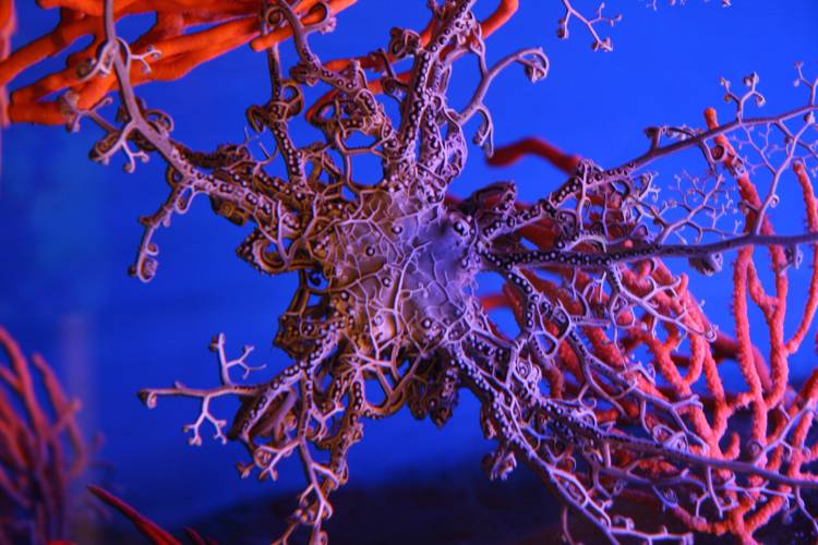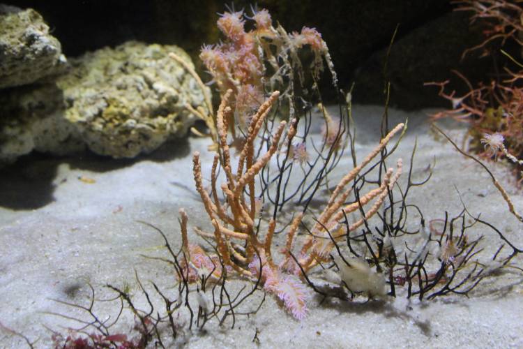 When you enter the Skretting Atlantic Ocean Gallery, spend some time in awe at the Cold Water Mosaic Exhibit on the right-hand side. Here you’ll spot delicate basket stars, a polychaete worm living in a Christmas tree, and coral nudibranchs.
