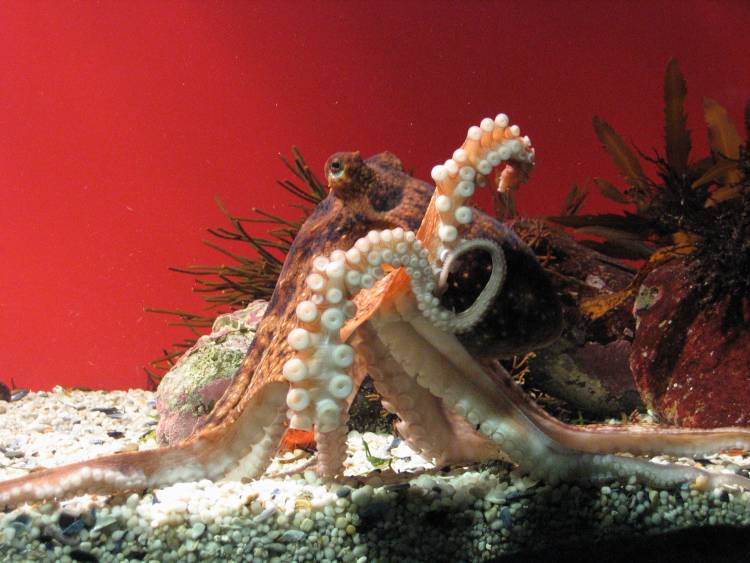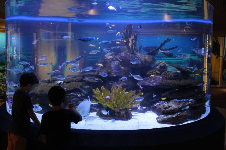 Fear not the harmless giant spider crabs that lurk in the dark recesses of the Atlantic Ocean Gallery. Thrill at the octopus as he extends his tentacles and moves gracefully through the water.