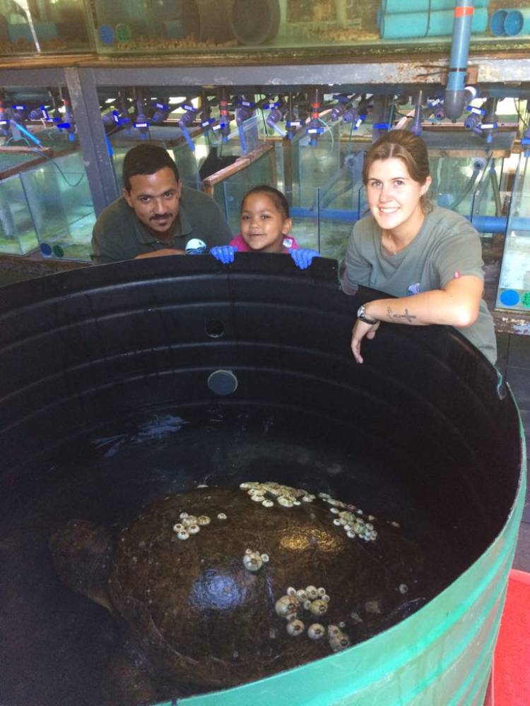 The Two Oceans Aquarium has a good relationship with the LBRC, as they are one of our official Turtle Rescue Network points and have rescued quite a few turtles in the past, including our darling Sandy the green turtle. We were incredibly grateful that some of their staff - Tasmyn Taylor, Gershwin Feilies and his young daughter Ava - were willing and able to drop everything and drive this precious cargo all the way down to our rescue facility at the Aquarium.