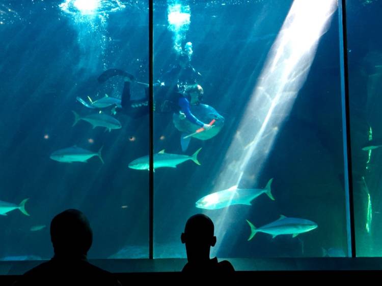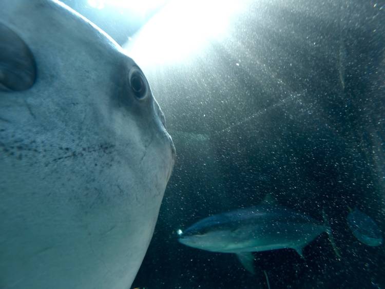 Many people have never seen sunfish – one visitor, on seeing the very first sunfish we had on display in the I&J Predator Exhibit, was convinced it was a robot! Those that are seen at sea are often mistaken for sharks because of the shape of their dorsal fin.