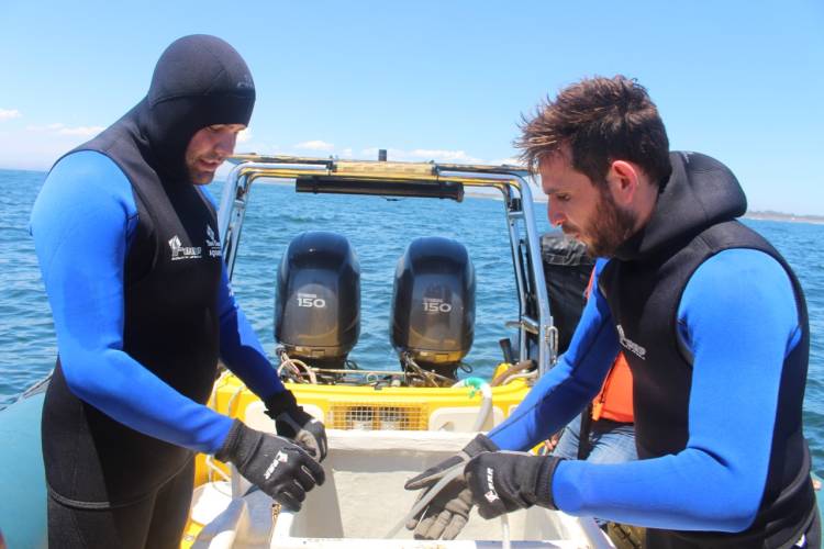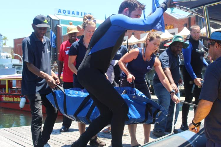At about 1pm, Operations Manager Tinus Beukes and his team headed out towards Robben Island on the rubber duck Aquarium 1.