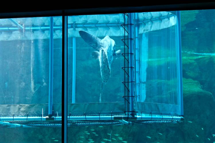 Our team constructed this temporary enclosure in record-time this morning in order to accommodate the sunfish inside the exhibit.