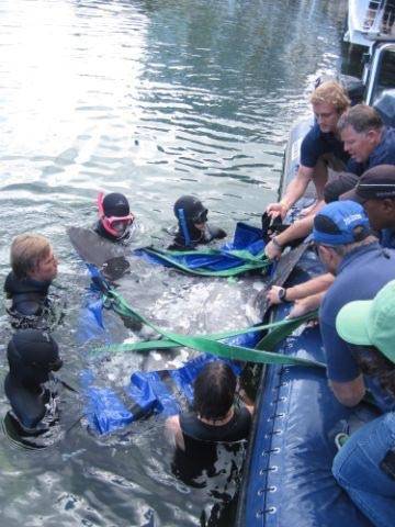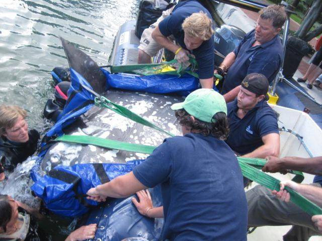 The sunfish was approximately 1.5 metres long and weighed about 150kg (it was a big one). The team was then faced with the challenge of hoisting this large animal into a holding tank on Aquarium 1.