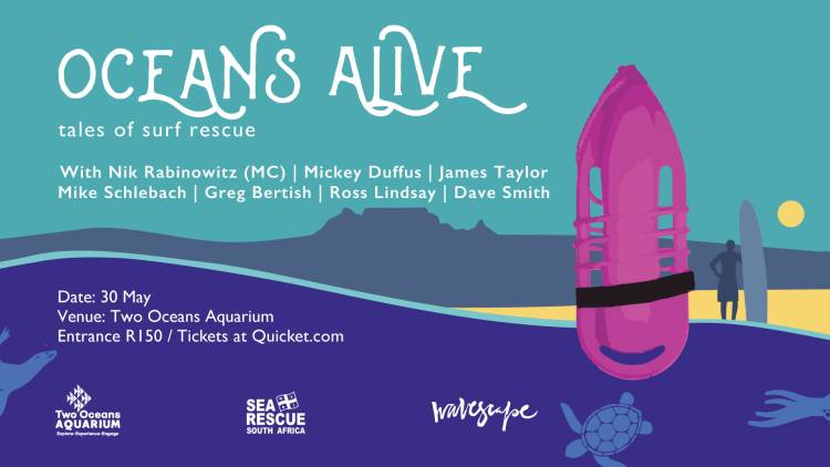 Oceans Alive – hosted by the Aquarium in collaboration with the NSRI, Wavescape and the surfing community of Cape Town – takes place on Wednesday 30 May at 18:30. MC for the evening Nik Rabinowitz will lead a panel of big wave surfing legends – including Mickey Duffus, James Taylor, Mike Schlebach, Greg Bertish, Ross Lindsay, and Dave Smith – in a light-hearted chat about their stories of rescue in frightening wipeouts, as well as other terrifying tales of riding giant waves.