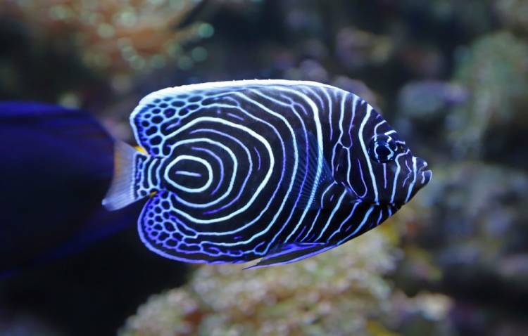 Finally, the juvenile angelfish is in some ways more adaptable than its adult counterpart. In fact, it will often "clean" parasites off of other species of fish, and the vivid blue colours are a common signature of many different species of "cleaner" fish. The electric blue colours thus serve to signal its willingness to "clean" to potential client fish.