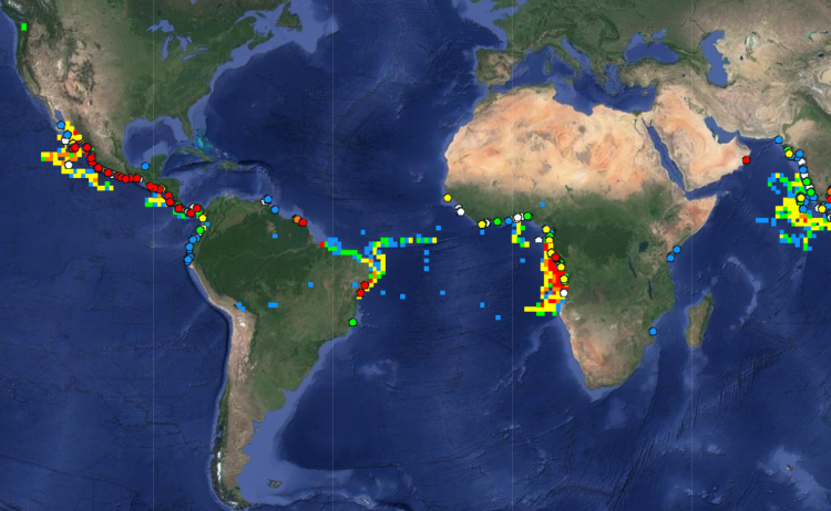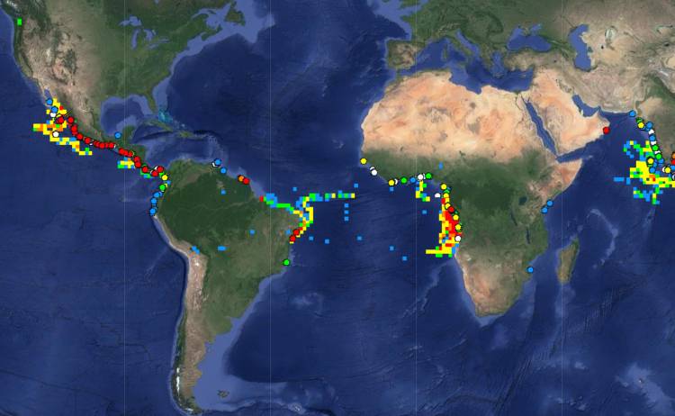 Like Yoshi, there is a good chance that Pemba may decide to cross the Atlantic Ocean at some point and nest on the coast of Brazil, although olive ridleys more commonly nest on the northern coasts of South America. If she continues along the African coast, she may nest on a beach off Angola, Congo or Gabon and may forage as far north as Cape Verde.