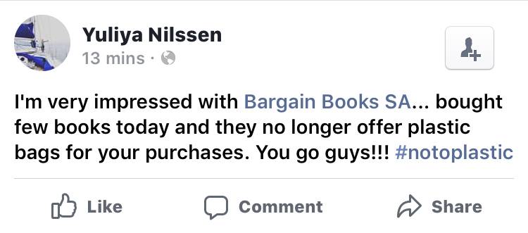 This is the time for reflecting on the year that was, and looking ahead to the what is coming. As 2017 ended, Bargain Books Marketing Manager Bianca Adendorff looked back on the year that they decided to say no to single-use plastic shopping bags.