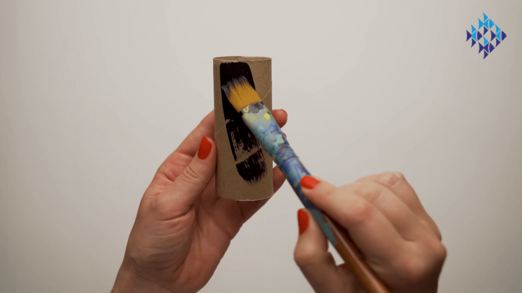 - Start by painting the toilet roll black. Careful not to make a mess!
