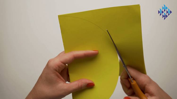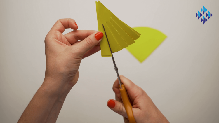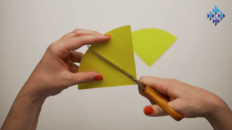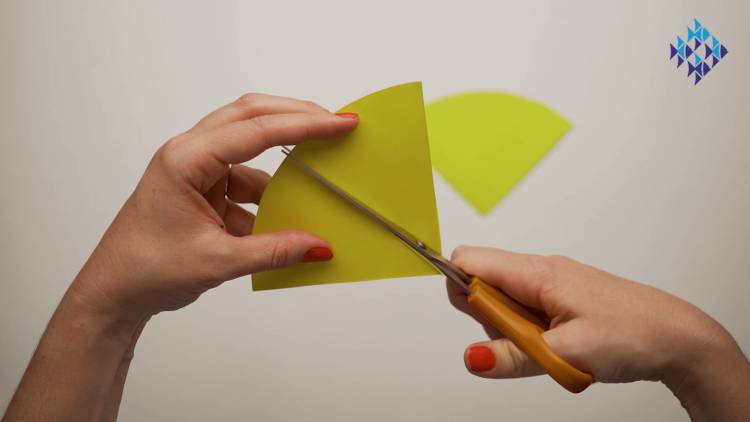 - Cut a wedge out of a small piece of yellow paper. This should be a diamond shape if you unfold it.