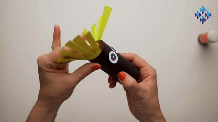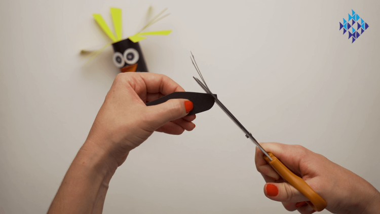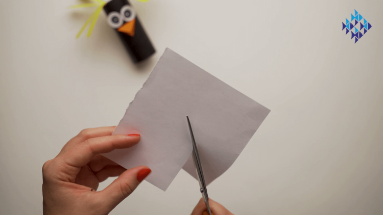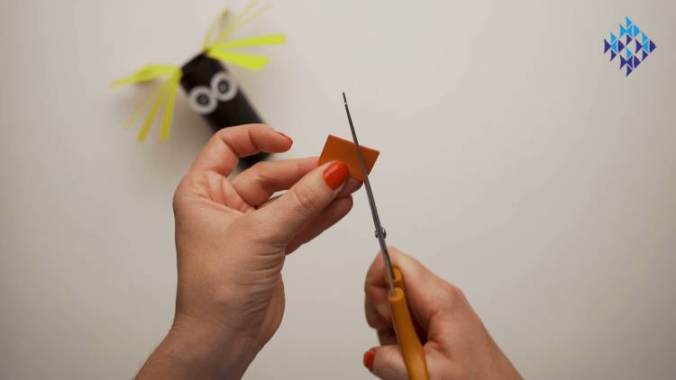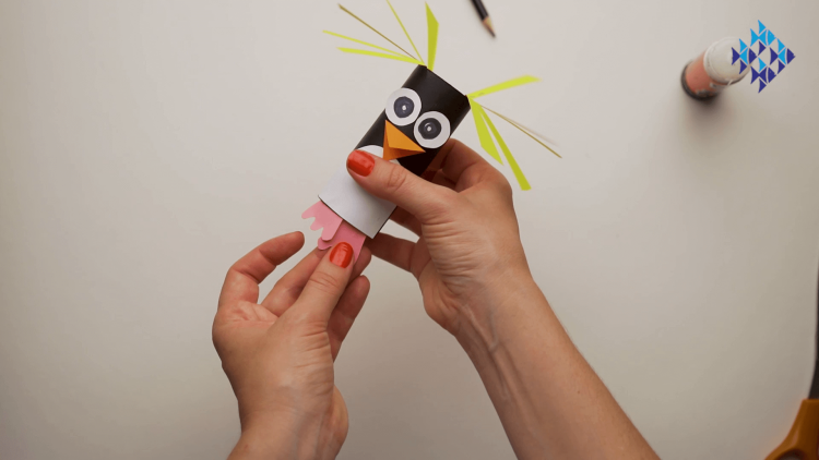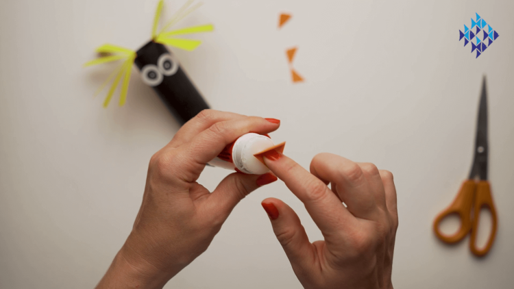 - Glue this orange "beak" onto your toilet roll, under the eyes.