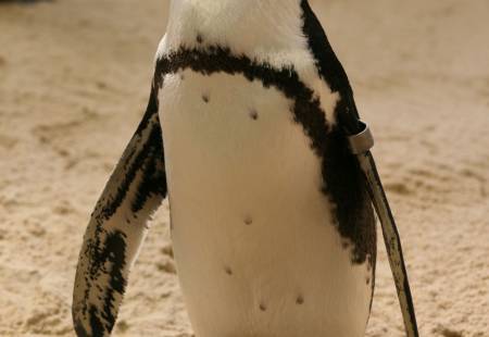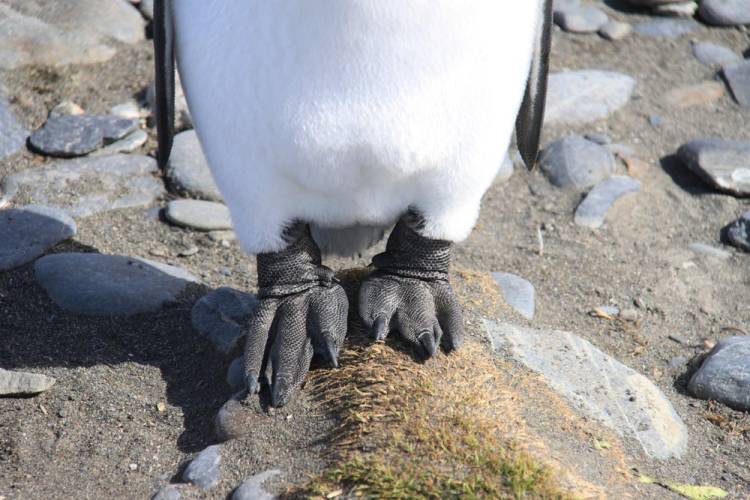 Penguins have a thick layer of blubber, covered in a layer of plumage, ensuring their body heat is retained. However, heat escapes from two main areas: the beak and the feet. But this can actually be a good thing. By having areas that heat can readily escape from, penguins are able to regulate their body temperature, keeping them from overheating at times. In addition to acting as temperature control, penguin feet are bare for other reasons as well. Penguins need them to grip the ice and help to steer when they are swimming in icy water.