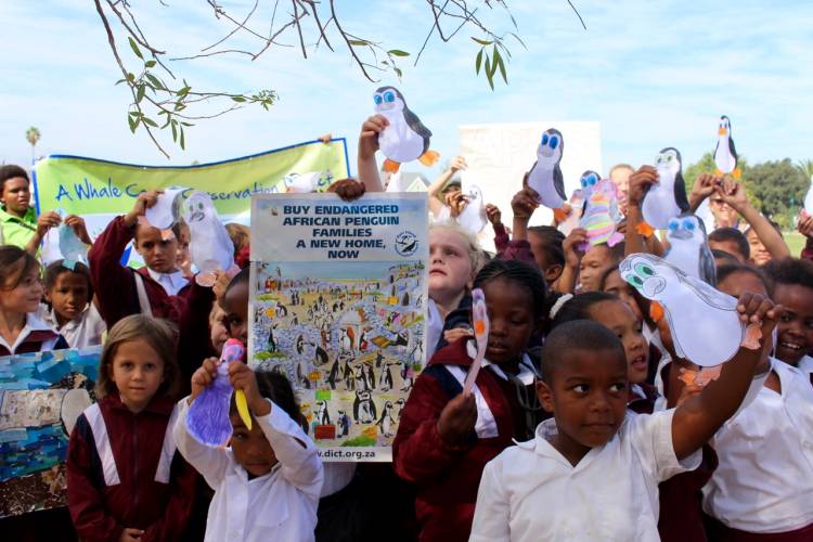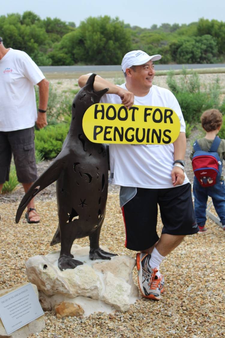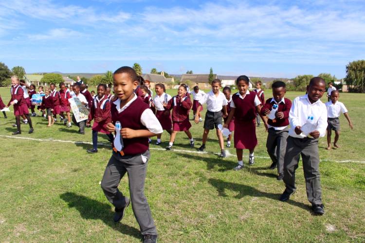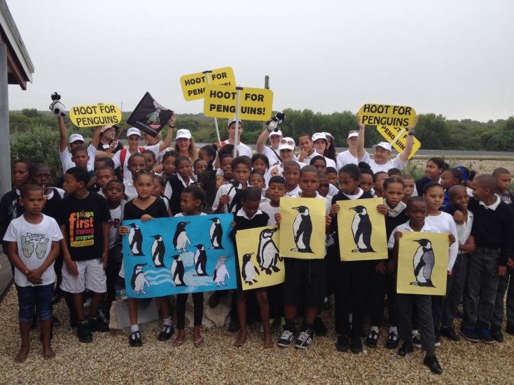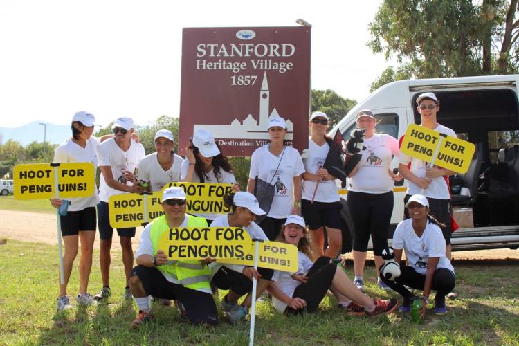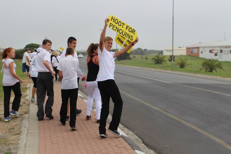 In Stanford a group of environmentally aware kids from Okkie Smuts Primary showed us how they do a proper penguin waddle. They also added hundreds of penguin promises to our post box and did their own little march around the rugby fields.