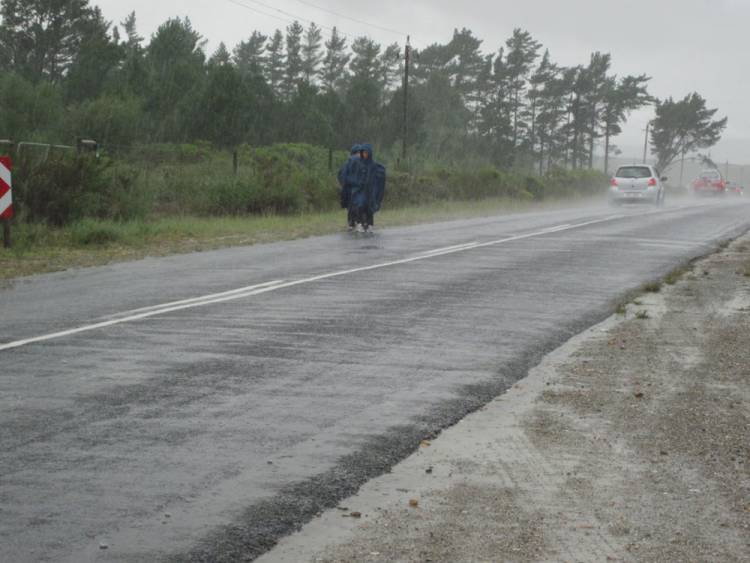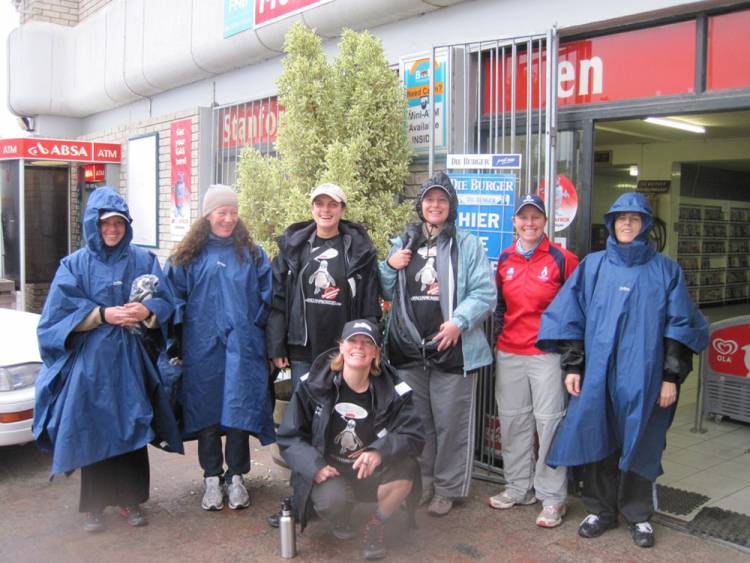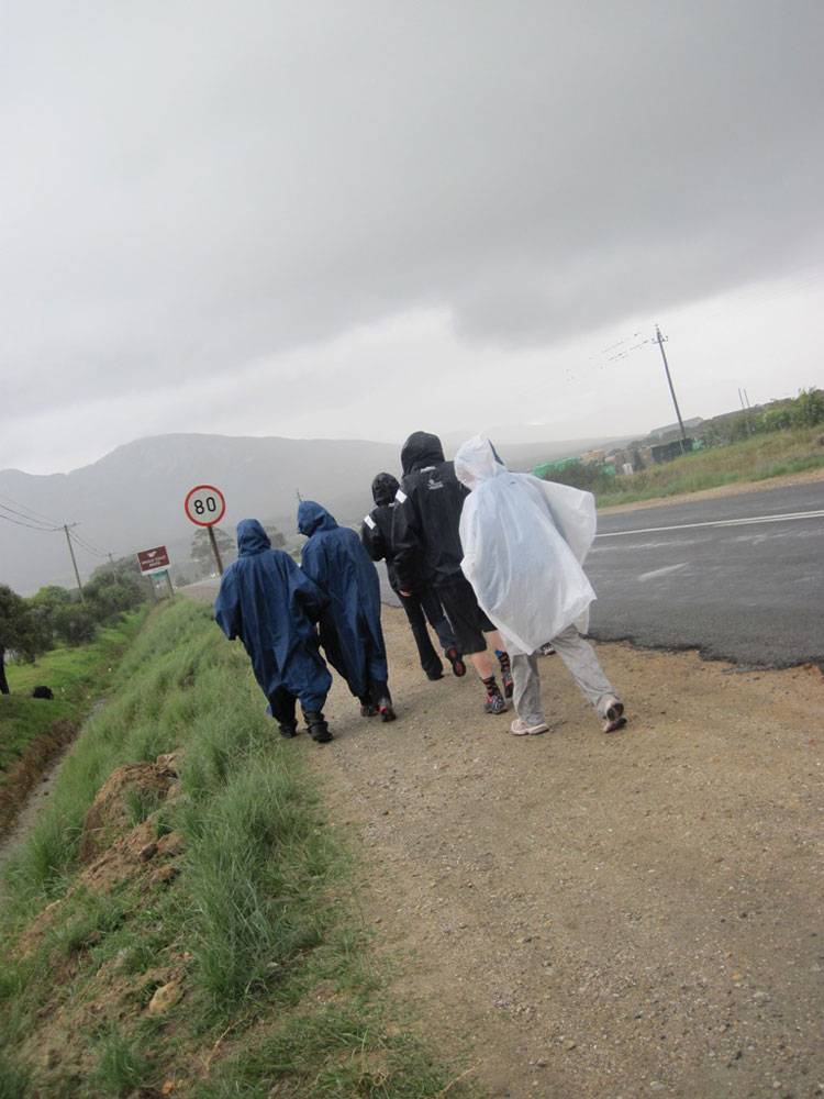 The Waddlers were ready for their second day of walking and, as if on cue, the rain started bucketing down. Now, I live in Cape Town and I am pretty used to rain, but these raindrops were big, fat, heavy blobs of water that soaked everyone within minutes! The rain stayed with the Waddlers for a large part of the day, but if you were to look for a picture describing “determination” you would find one of the Waddlers.