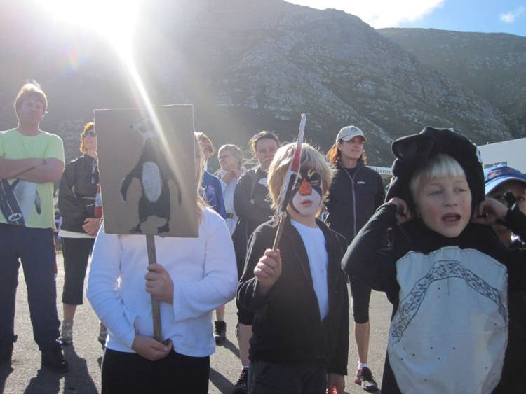 In Betty’s Bay, the Waddlers were joined by approximately 40 learners from schools in the area. Together they walked the last 3km to Stony Point, where the penguin mascot again welcomed them. Here, emotions were high. The Waddlers had reached a very significant point on their route.